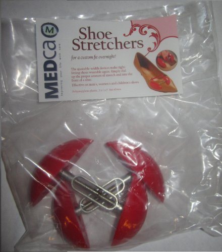 Studio : MEDcaTM Publisher : MEDcaTM Binding : Office Product Product Description MEDca Shoe Stretcher: The miracle stretching system that will customize the fit of your shoes. Shoes and gloves fit better- magically! Stretch shoes for ultimate comfort. Get the custom fit you have been wishing for. Say goodbye to the pain and discomfort of tight-fitting shoes with the miracle stretching system that will customize the fit of your shoes. Expanders have adjustable contoured knobs that reach narrow, tight-fitting areas. Specially designed expanders gently expand shoe width of toe box and heel. An easy way to customize the fit of your shoes: Use expanders for maximum results. Repeat as needed to achieve desired results Features: Provides immediate relief from wearing ill-fitting shoes Eliminates the need to "break-in" shoes Relieves discomfort from common foot problems such as bunions, corns, calluses, misshapen hammertoes, and uneven foot sizes Includes: 2 x Shoe expanders 0