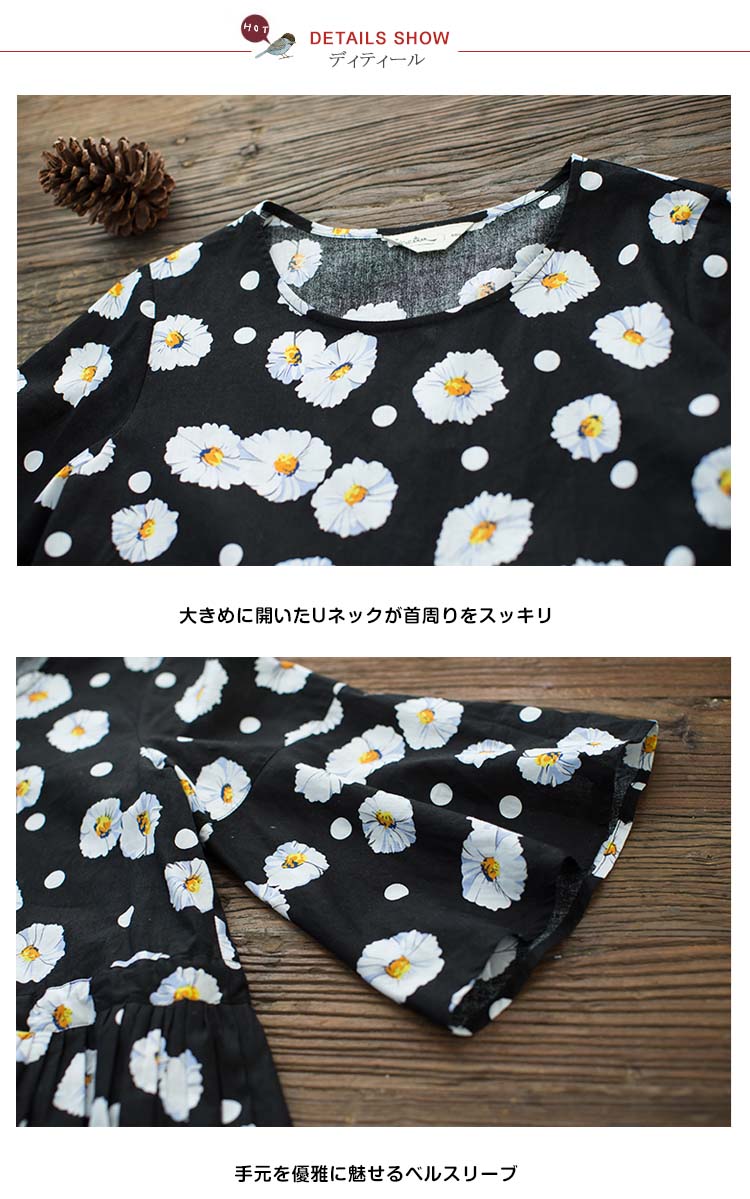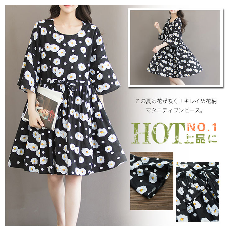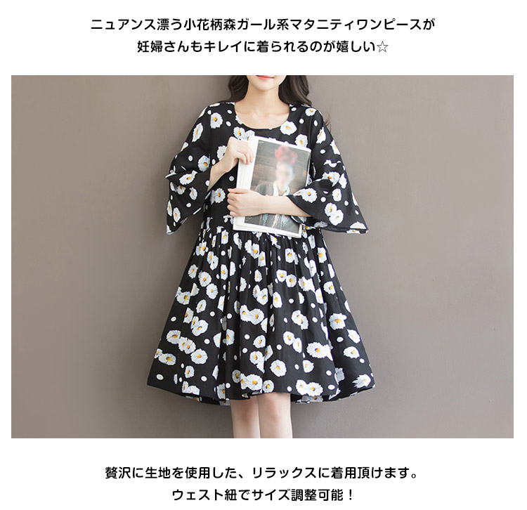 | この夏は花が咲く!キレイめ花柄マタニティワンピース。ニュアンス漂う小花柄森ガール系マタニティワンピースが妊婦さんもキレイに着られるのが嬉しい☆贅沢に生地を使用した、リラックスに着用頂けます。ウェスト紐でサイズ調整可能!薄手綿麻素材が風通しもよく、肌に馴染む最高の着心地を与えてくれます?冷房や夕方冷えなど場合はベストとレイヤードしてもお洒落!通勤やちょっとしたお出掛けにも充分に対応出来る一枚です☆ | |