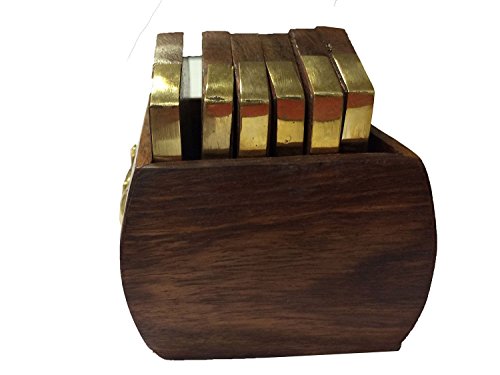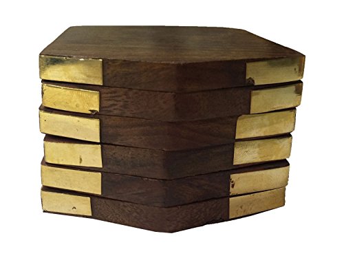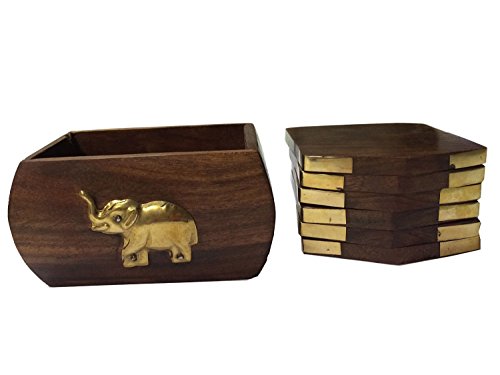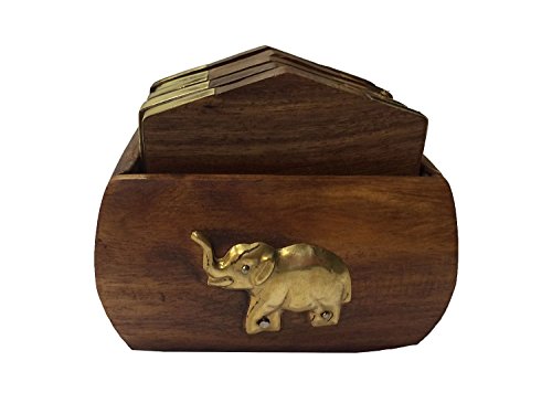 - Wooden Coaster With Elephant Inlay Brass Design, Handcrafted by artisans of Saharanpur in north India