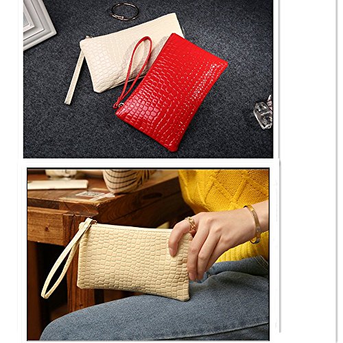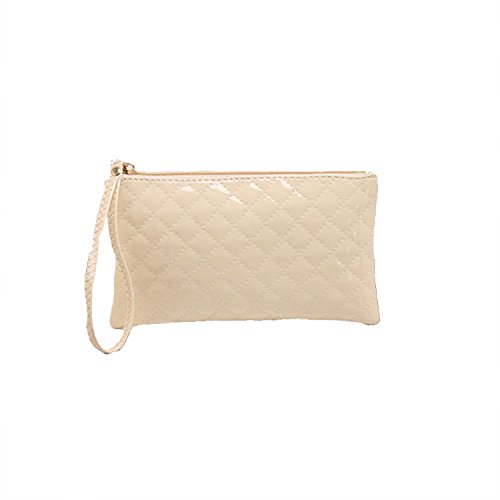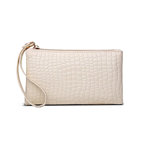 SUNYOU Women's Fashion Cute Leather Wristlet Clutch Cellphone Purse Wallet Makeup Handbag (beige)