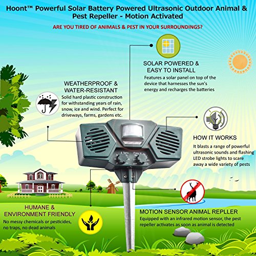 -. Title : Hoont™ Powerful Solar Battery Powered Ultrasonic Outdoor Animal & Pest Repeller - Motion Activated [UPGRADED VERSION]