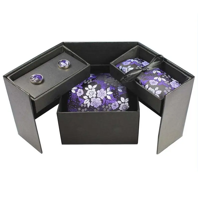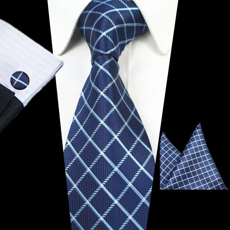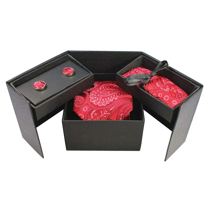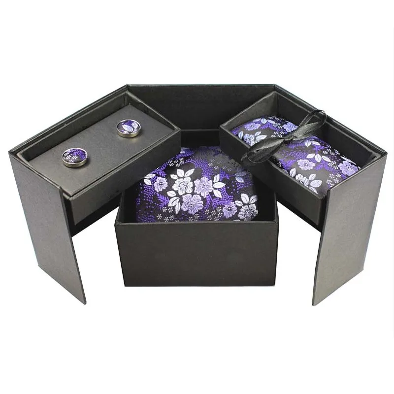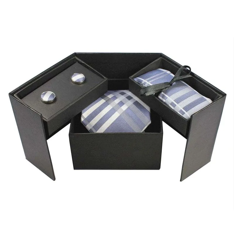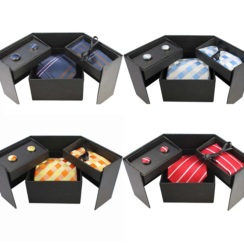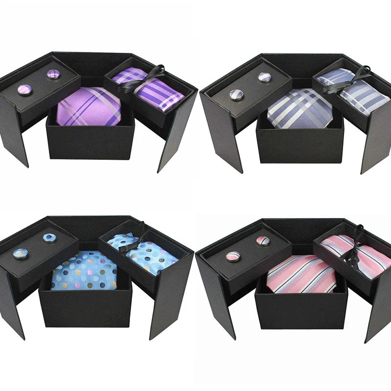Tie Set With Gift Box:Necktie + Handkerchief + Cufflinks + Gift Box