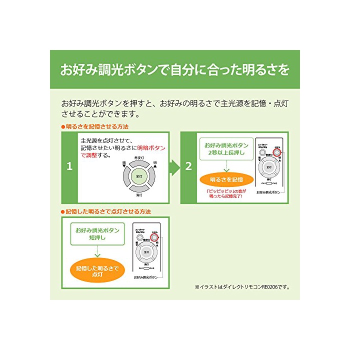 리모콘:【전등상야등OFF】조빛: 연속조광(100%~약10%)고, 다단조빛(100% 약70% 약50% 약30% 약10%)고, LED상야등(7단계조광)고, 멸,고, 벽스위치 콘트롤(전등,메모리조 광점등,상야등)벽스위치로 민첩하게(약2 초이내)에서 OFF→ON 하는 것(일)에 보다 점등 순서가 잘라 교체고 있습니다.fade 오프 기능,슬립 타이머(30 분60분)