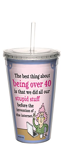 Tree-Free Greetings 16-Ounce Double-Walled Cool Cup with Reusable Straw, Aunty Acid Over 40 (CC98558)