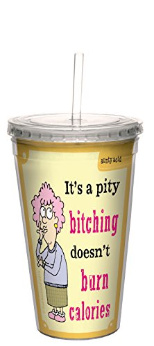 Tree-Free Greetings 16-Ounce Double-Walled Cool Cup with Reusable Straw, Aunty Acid Burn Calories (CC98527)