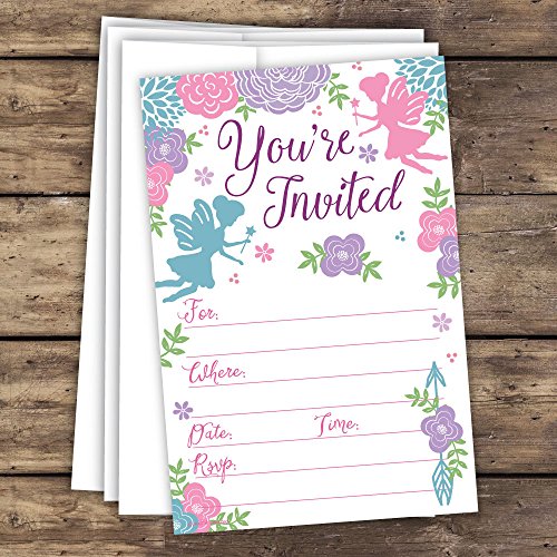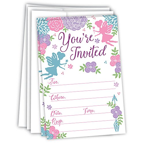 Fairy Girls Birthday or Baby Shower Invitations (20 Count) With Envelopes