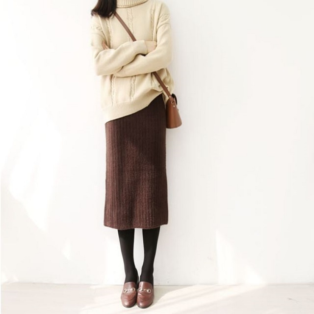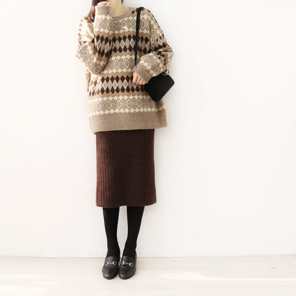 ゆったりニットと合わせてバランスよく着こなすのがGOOD♪