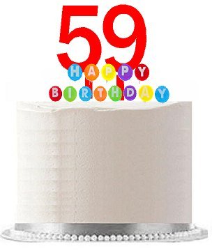 Item#059WCD - Happy 59th Birthday Party Red Cake Topper & Rainbow Candle Stand Elegant Cake Decoration Topper Kit