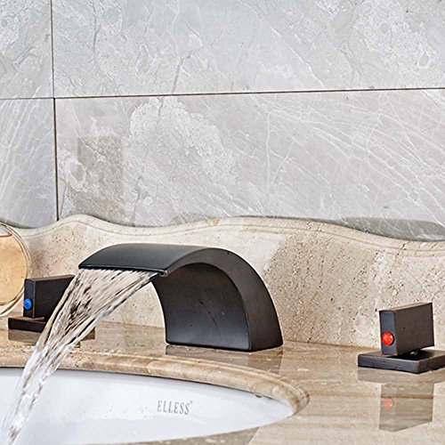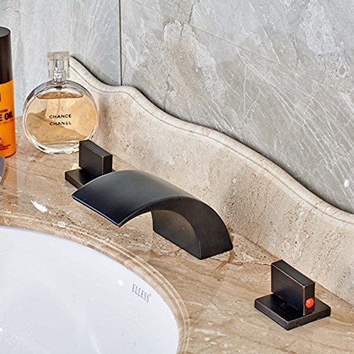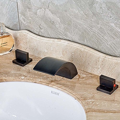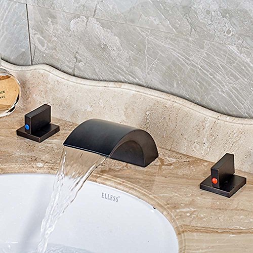 Votamuta Oil Rubbed Bronze Waterfall Bathroom Basin Sink Faucets Deck Mounted 8-Inch Widespread Mixer Taps with Pop Up Drain