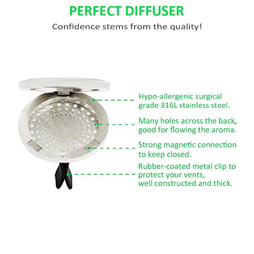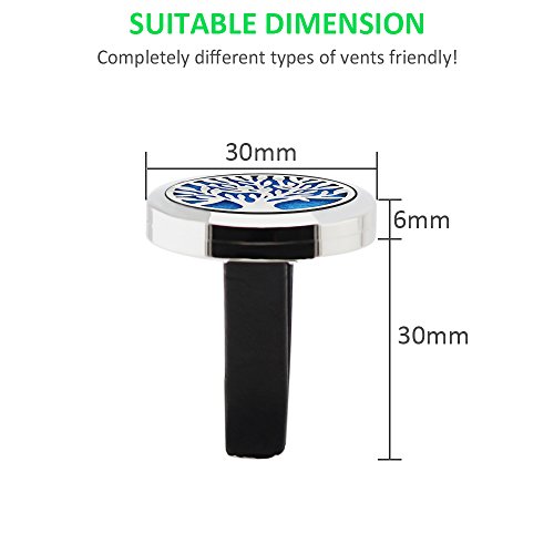 Car vent diffuser is well made by stainless steel, 30mm(1 1/8") outside diameter. Great way to keep yourself surrounded by the healthy scents of essential oils on the road.