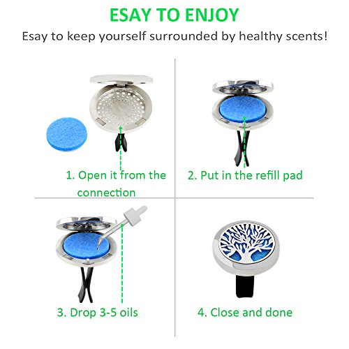 How to Use:Simply add 3-5 drops off essential oils/perfume to a pad, wait for it absorb, and place the pad back inside the locket.