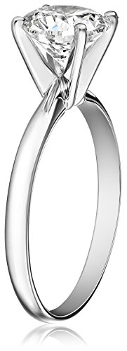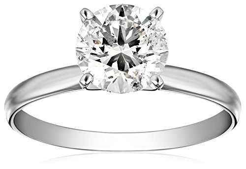 Engagement ring featuring round-cut diamond in four-prong setting and platinum band