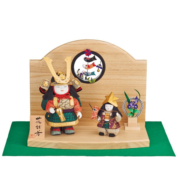 ・和洋室に合う高級自然木使用の台座の五月人形飾り