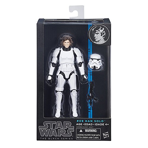 -. Binding : Toy -. Brand : Star Wars -. Color : White -. EAN : 0630509260942 -. Feature : Create adventures and scenes from Star Wars entertainment / Collect the wide range of articulated Star Wars action figures that are each sold separately / Most of the Star Wars vehicles have realistic action features / Pretend to be favorite characters with the role-play gear / Battle as a Jedi or a Sith, a Rebel or Imperial trooper, a Battle Droid or Clone Trooper -. Label : Hasbro -. Manufacturer : Hasbro -. Model : A9389AS0 -. MPN : A9389AS0 -. PackageQuantity : 1 -. PartNumber : A9389AS0 -. ProductGroup : Toy -. ProductTypeName : TOYS_AND_GAMES -. Publisher : Hasbro -. ReleaseDate : 2015-05-30 -. Size : Standard -. Studio : Hasbro -. Title : Star Wars The Black Series 6" Han Solo in Stormtrooper Figure -. UPC : 792491461964 -. Warranty : No Warranty