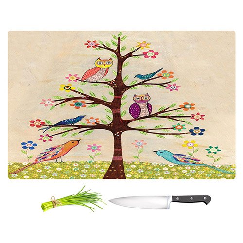 DiaNoche Designs CB-SascaliaOwlBirdTreeii2 Sascalia-Owl Bird Tree II Unique Kitchen Slicing Dicing Bar Artistic Decorative Cutting Boards from, Large 15" x 11"