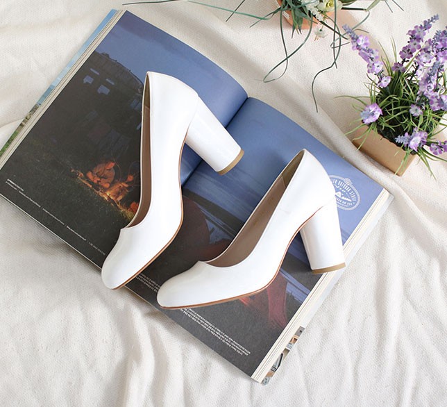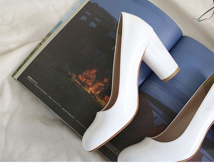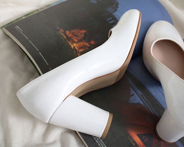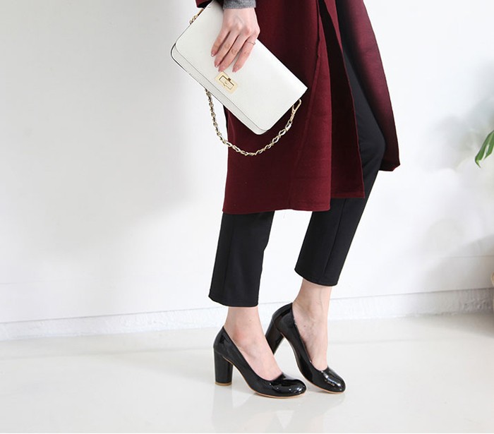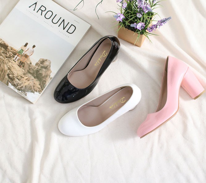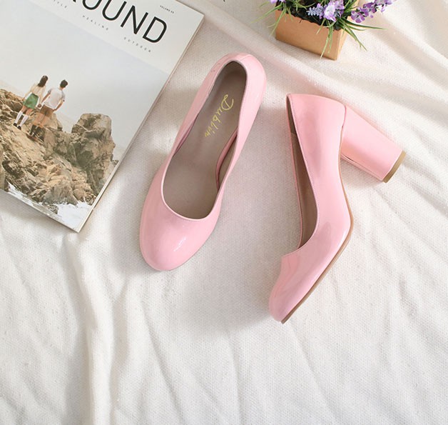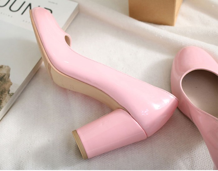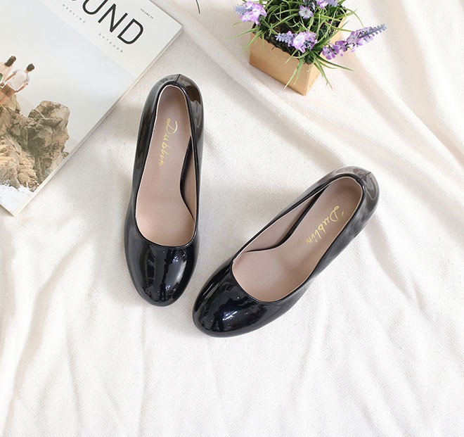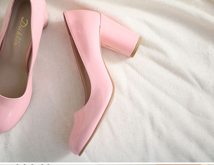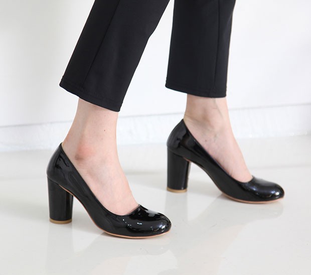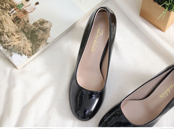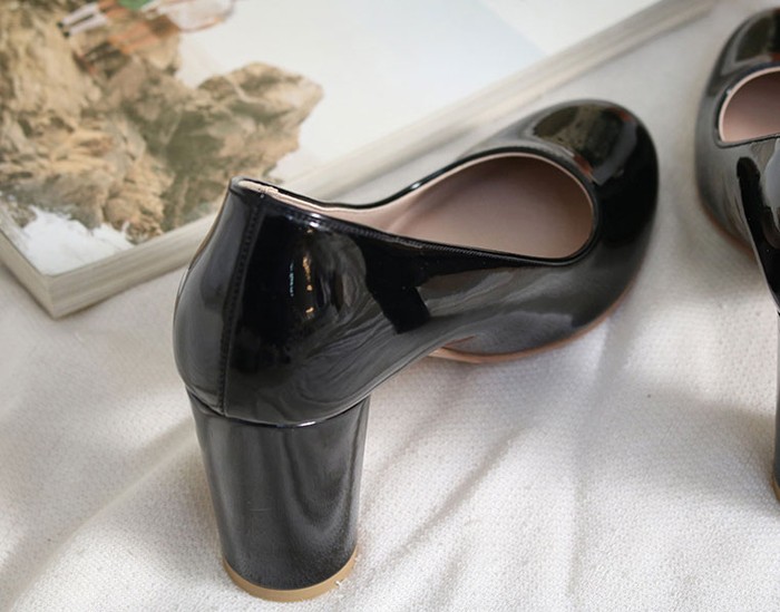 商品名:パンプス レディース 太ヒール チャンキーヒール エナメル調 2017 秋 冬 ファッション 靴 婦人靴