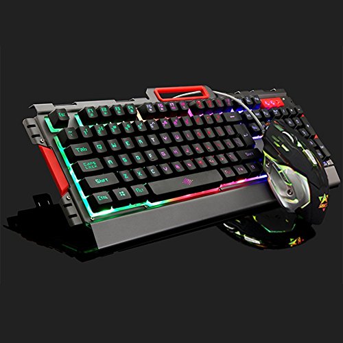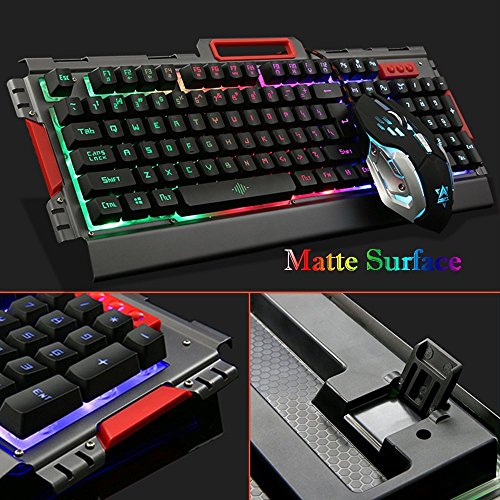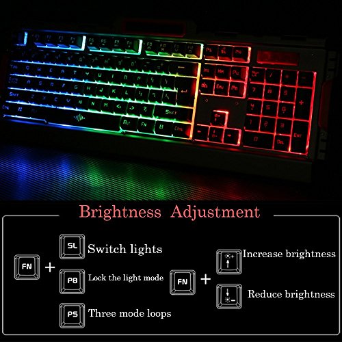 Gaming Keyboard, Fxexblin LED Backlit 105 Keys Mechanical Feel Gaming Keyboard USB Wired Great for Working or Prime Gaming (Rainbow))