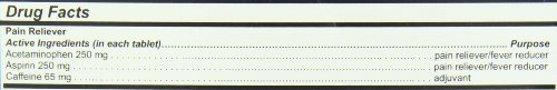 Product Description Same ingredients as extra strength Excedrin. Temporary relief form pain, fever. Inflammation. Soothes muscle aches and minor arthritis pain. 0