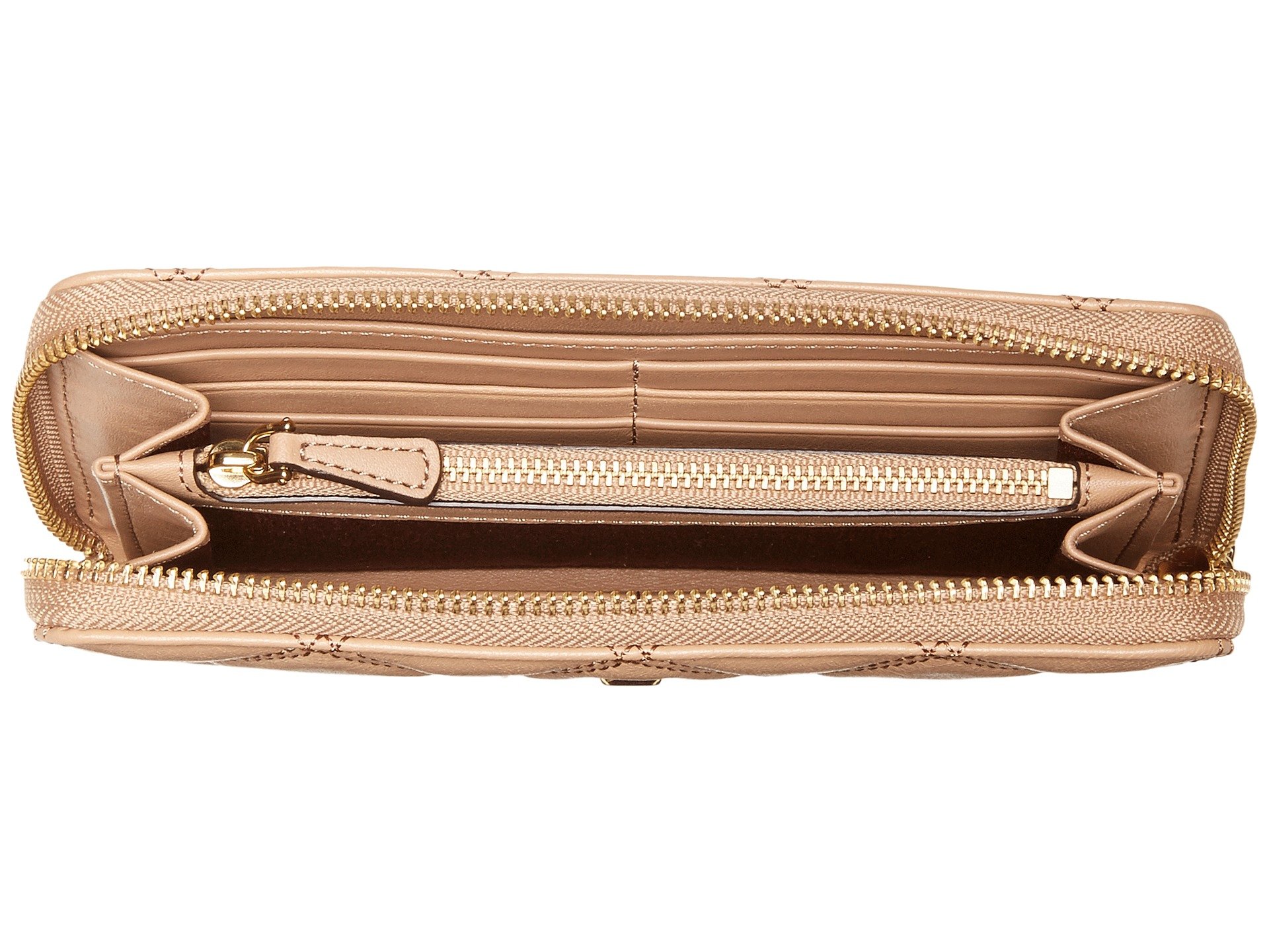 | Product Information SKU: #8915833Cruise through your day with the easy excellence of the Marc Jacobs? Double J Matelasse Standard Continental Wallet.Wallet made from 100% leather.Zip around closure. Embossed checkered style design adorned throughout. Iconic Double J brand logo hardware at front. Leather lined interior features twelve credit card slots, center zip pocket, and three slip pockets for easy storage. Imported. This item may ship with an attached security tag. Merchandise returned without the original security tag attached or a damaged tag may not qualify for a refund.Measurements: Bottom Width: 7 1?2 in Depth: 1 in Height: 4 in Weight: 6.4 oz |