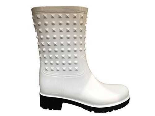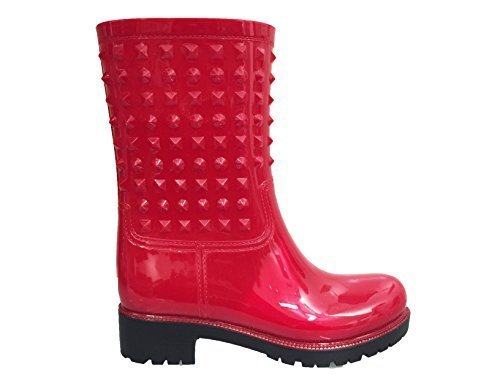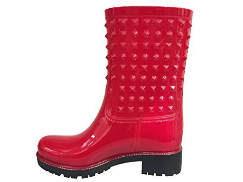 OwnShoe Womens Wellies Rubber Waterproof Snow Rain Boot Studded Midcalf Flat Rainboots