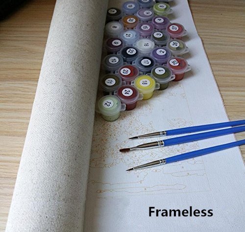 - KIT Package - Painting by numbers kit include 1 pc pre-printed textured art canvas (without framed), 1 set acrylic paints, 1 set brushes(include 3pcs).
