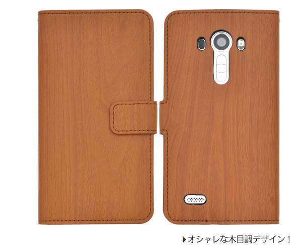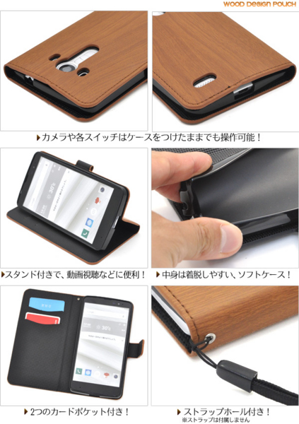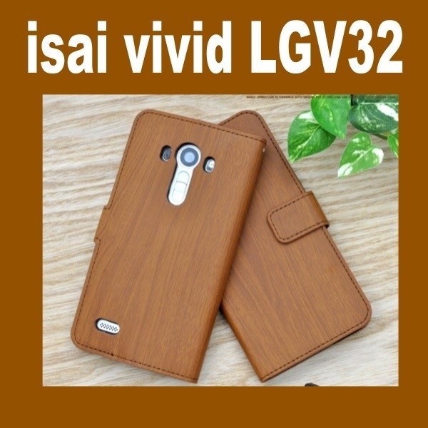 木目調のisai vivid LGV32用スタンドケースポーチ。