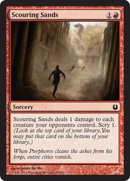 -. Binding : Toy -. Brand : Magic: the Gathering -. EAN : 0771481814591 -. Feature : Magic: the Gathering - Scouring Sands (110/165) - Born of the Gods / Red -. Label : Wizards of the Coast -. Manufacturer : Wizards of the Coast -. MPN : 1814591 -. PackageQuantity : 1 -. PartNumber : 1814591 -. ProductGroup : Toy -. ProductTypeName : TOYS_AND_GAMES -. Publisher : Wizards of the Coast -. Studio : Wizards of the Coast -. Title : Magic: the Gathering - Scouring Sands (110/165) - Born of the Gods by Magic: the Gathering -. UPC : 771481814591