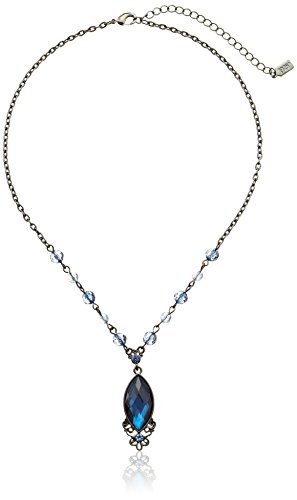 -. Feature : Heirloom-inspired black-tone pendant featuring blue beads on a silver-tone chain with a marquise-shape faceted crystal / Cable chain with lobster-claw clasp and 1928® brand logo tag / Imported