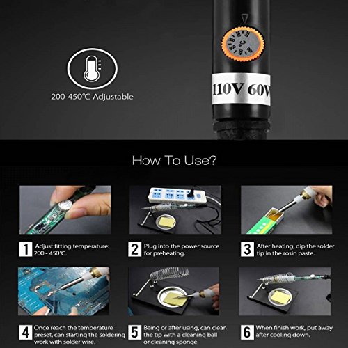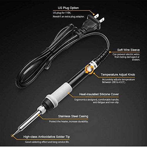 Soldering Iron, Liumy 110V/60W Electric Soldering Iron Kit, 5 PCS Replaceable Iron / Adjustable temperature controlled Welding Iron (White)