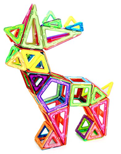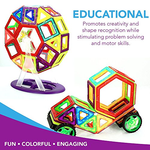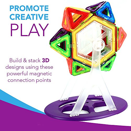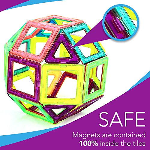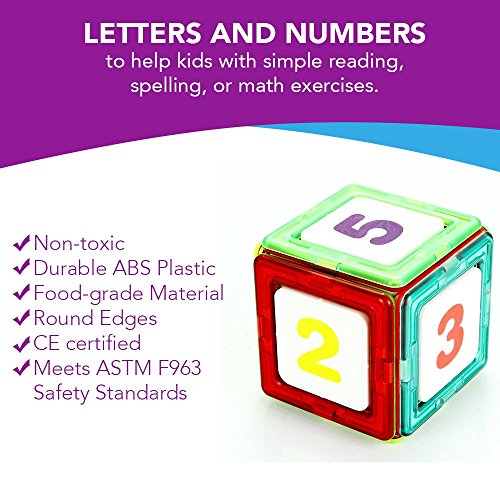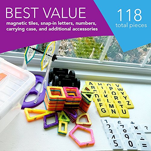 echoMAGs: PROMOTE CREATIVE PLAY - echoMAGs Building Tiles are a flat magnetic stacking block with two colored sides. Children can endlessly build and stack 3D designs using these powerful magnetic connection points that firmly hold designs until ready for disassembly. SAFE -- echoMags are made of a non-toxic and durable ABS plastic, food-grade material. The edges are round and the magnets are contained 100% inside the tiles. echoMAGs are CE certified and meet ASTM F963 standards BEST VALUE - 118 total pieces which include magnetic tiles, snap-in letters and numbers, and additional accessories to make the pictured Carousel and vehicles. Your kids will Play & Learn for hours of Educational Entertainment. This set also comes with a plastic storage case. Recommended for Ages 3+ EDUCATIONAL - Magnetic building tiles promote creativity and shape recognition while stimulating problem solving and motor skills. This fun, colorful, engaging set makes a wonderful birthday or Holiday gift for anyone. CLICKIN'S - Letters and numbers to help kids with simple reading, spelling, or math exercises.Feature