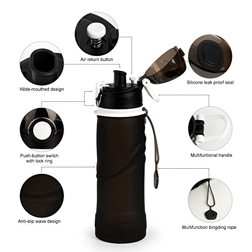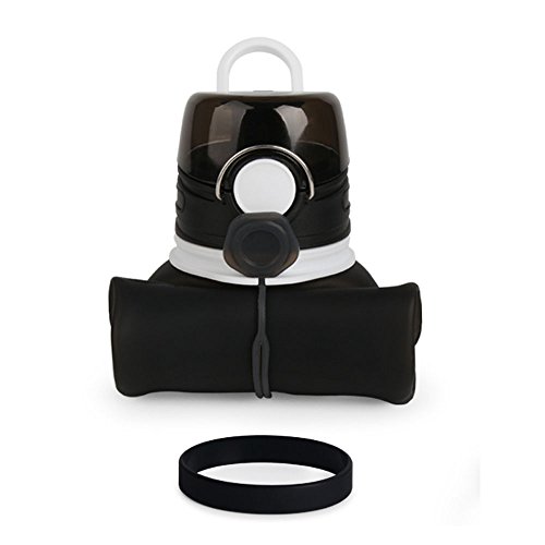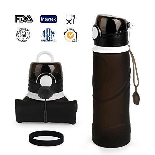Collapsible Foldable Sports Water Bottle 750ML with Sports Wristband Bracelet Leak Proof 100% BPA Free, PDA approved, Medical grade silicone, for Outdoors, Camping, Biking and Traveling