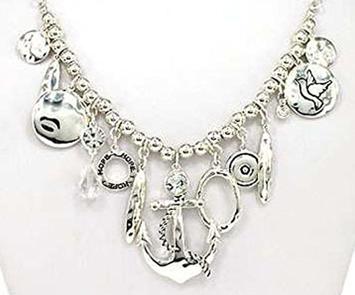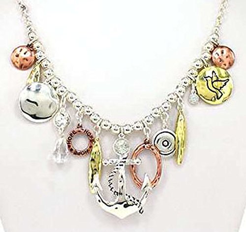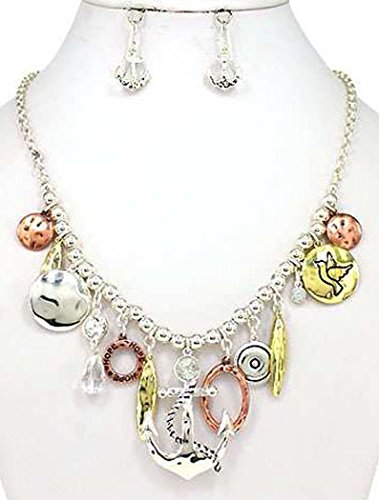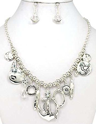 -. Title : Hammered Anchor with Circle of Hope 18" Necklace set with Anchor Earrings by Jewelry Nexus