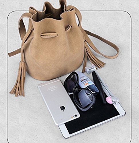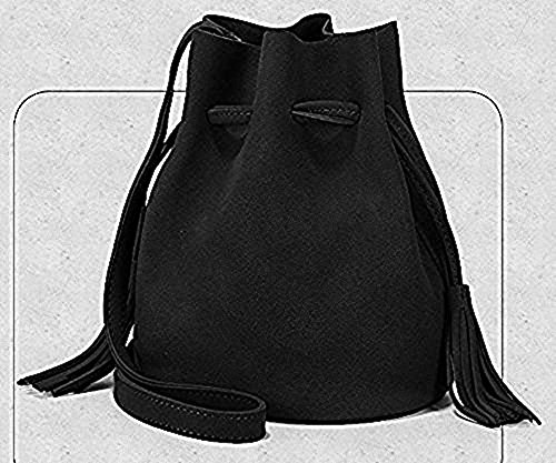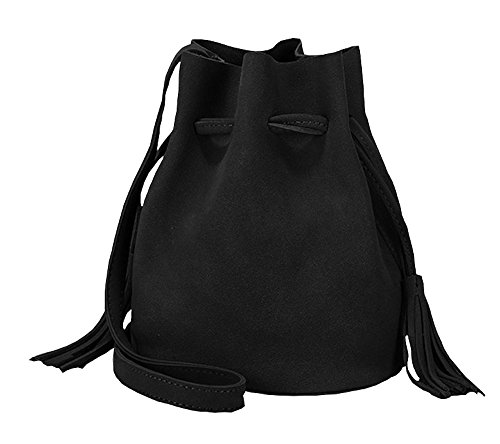 Women's Cross-body Shoulder Bag Faux Suede Tassels Mini Fashionable Stylish(Black)
