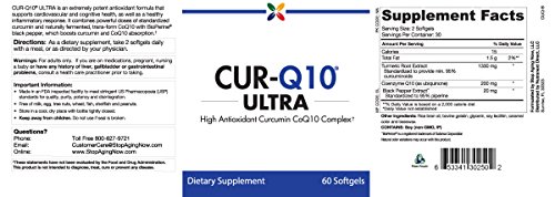 CUR-Q10 ULTRA provides a potent dose of 1,330 mg of turmeric standardized to 95 percent curcuminoids including curcumin, demethoxycurcumin and bisdemethoxycurcumin. This standardization is one of the highest amounts achievable and far superior to other forms of curcumin which are often standardized to 50 percent or less. CUR-Q10 ULTRA also contains 200 mg of highly bioavailable Kaneka Q10 trans-form CoQ10. Kaneka Q10 is bio-identical to the CoQ10 that is produced naturally within the body. This natural trans-form variety of CoQ10 is more readily absorbed than synthetic varieties. CUR-Q10 ULTRA is enhanced with 20 mg of BioPerine black pepper extract standardized to contain 95 percent piperine to ensure maximum curcumin absorption and peak effectiveness, as well as antioxidant benefits. BioPerine is the only patented black pepper extract that has been proven to significantly enhance absorption of curcumin by up to 2,000 percent and absorption of CoQ10 by over 30 percent.Feature