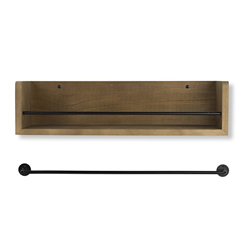 Product Dimension Length: 20" Depth: 6 Height: 5 Rail dimensions: Lenght: 19.75" Product Decription Shelf : 100% Solid Wood Rail : Metal