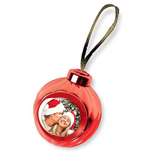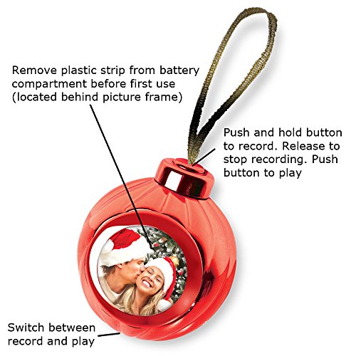 Red Voice Recording Talking Christmas Ornament - Add Your Own Photo and Press a Button to Record and Play Back