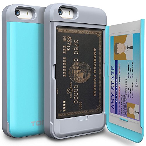 iPhone SE Case, TORU [CX PRO][Blue] - [CARD SLOT] [ID Holder] [KICKSTAND] Protective Hidden Wallet Case with Mirror for iPhone 5 / 5s / SE - Cyan