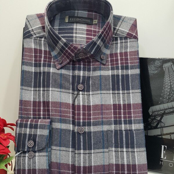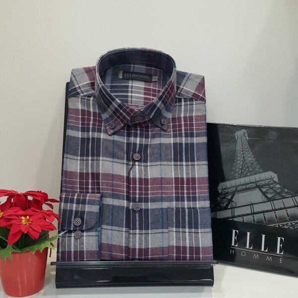 멀티체크 기모셔츠버튼다운 카라버건디.네이비 체크패턴