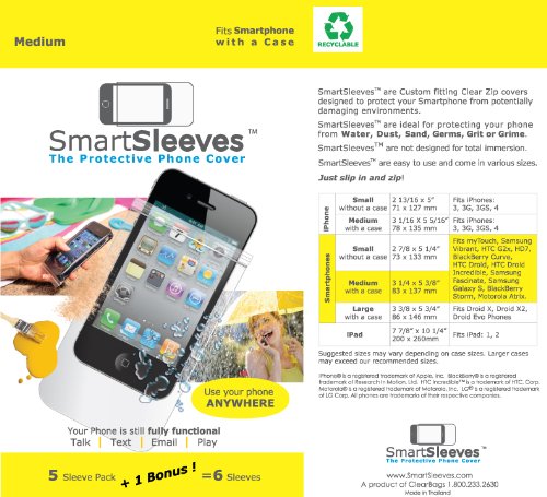 -. Feature : Fits medium sized smartphones / Your device is still fully functional inside the SmartSleeve! / Zip closure / Includes 6 sleeves