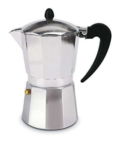With the invention of the stovetop espresso coffee maker, espresso long a staple of Italian cafés and bars became available for home consumption. As the cold water in the lower chamber heats, the pressure from its boiling forces the water up through the coffee grounds. In just a few minutes, espresso emerges from the spout into the upper chamber as the pot hisses and gurgles. Remove the pot from the heat and let it stand until the lower chamber is releasing only steam. The lower water tank holds a metal filter and features a safety valve. The upper tank fills with perfectly brewed coffee. Now Italy's favorite aluminum coffeemaker can go to work in your kitchen, making delicious espresso on gas or electric stovetops.Feature