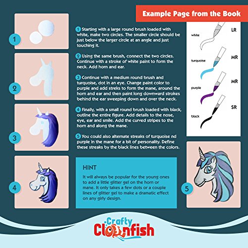 Face Painting Kit and Book - 56 Page Face Paint Book Complete Kit - Create Amazing Cheek Art - Non Toxic For Sensitive Skin Easy & Safe To Use 3 Brushes Easter Parties Schools