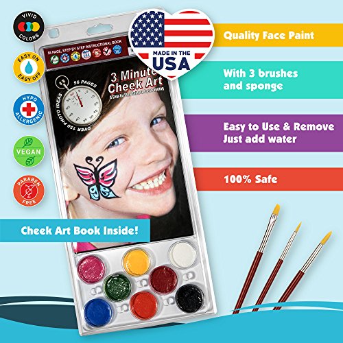 - ✅ FACE PAINT BOOK “3 Minute Cheek Art” HELPFUL 56 PAGE HOW TO FACE PAINT. The STEP BY STEP instruction book will easily explain and show you great tips and ideas to improve your face paintings. Over 150 cheek art designs. EASY TO LEARN