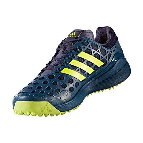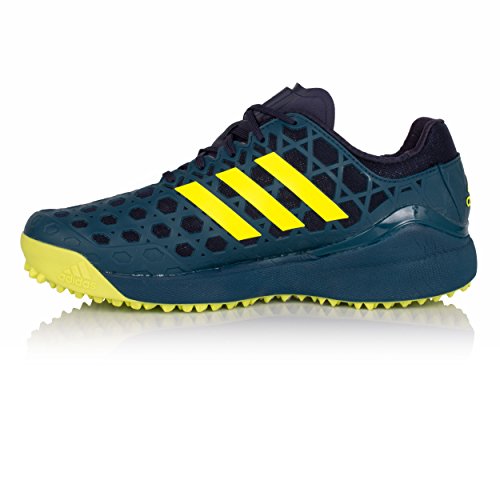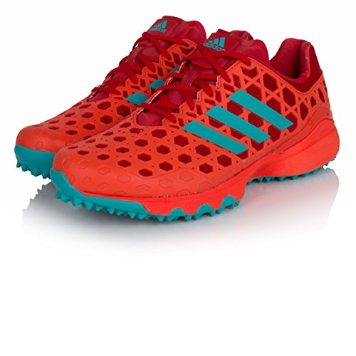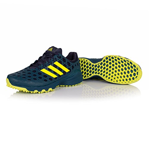 Studio : Adidas Publisher : Adidas Binding : Apparel Product Description Adidas Adizero Hockey Shoes These lightweight hockey shoes are designed to give you the sure-footed acceleration they need to attack the net. Breathable Upper A lightweight honeycomb RPU pattern ensure that your upper remains stable in order to maximise your performance on the hockey pitch. As well as keeping you stable, this upper also shields your foot, giving you much more confidence and motivation in order for you to be at your best. All the while, the shoes still manage to be breathable, so your feet stay nice and cool, thus making them comfortable even while going through strenuous activities. AdiPrene Technology Midosle Within the midsole of the Adidas Adizero Hockey Shoes is the AdiPrene and AdiPrene technologies. AdiPrene is a special cushioning within the heel and forefoot footbed of the shoe, that allows for great shock absorption. Therefore increases the overall comfort of the shoe. AdiPrene is special cushioning positioned under the toes, which too, enable great shock absorption, but it also adds propulsion, in order to assist you to lunge for the goal when you have the ball. Together these technologies mean that this shoe is not only very comfortable but able to assist you on the pitch. TPU Outsole The TPU outsole means that this Hockey Shoe has outstanding grip, which allows for greater acceleration and easy direction changes ensuring you can always have your eye on the ball. TPU also means that these shoes have fantastic durability, so you won't have to worry about deteriorating shoes on the pitch. 0