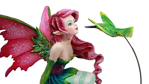 -. Title : Atlantic Collectibles Amy Brown Magenta Forest Fairy With Flirting Hummingbird Figurine 6"H