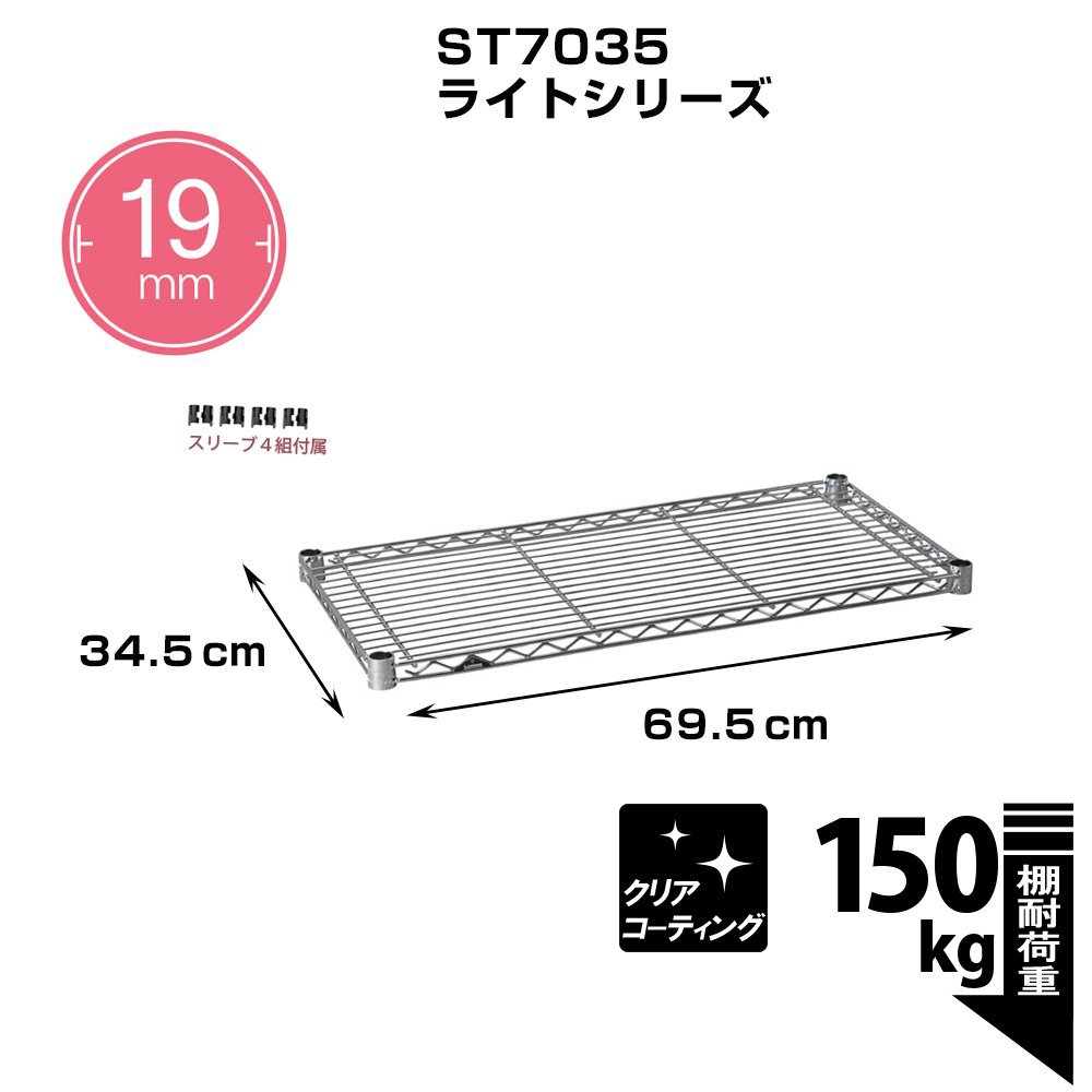 Luminous pole diameter 19mm parts for shelf plate steel shelf (load capacity 150kg) 1 sheet wire width direction (with sleeve) width 69.5 × depth 34.5cm ST7035