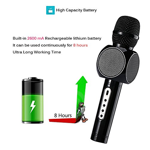 Wireless Microphone Karaoke, Bluetooth Speaker Portable Handheld Microphone Home KTV Outdoor Party Muisc Karaoke for Apple iPhone Android Smartphone or PC by Hyfanda (2600mAh, AUX, Black)