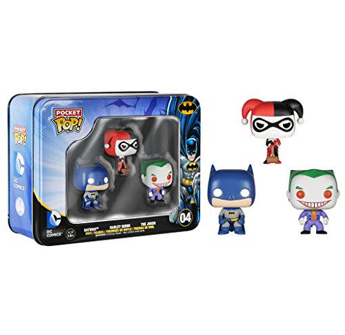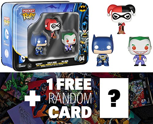 -. Binding : Toy -. Brand : DC Universe: Batman -. EAN : 9899999552642 -. Feature : ONE FREE official My Little Pony trading card is bundled with this item. The card is randomly picked and bundled, and there's a chance to receive a valuable rare card! If you return this item, the trading card must be returned as well. / Each figure is about ~1" to ~1.5" tall and crafted in a Japanese anime/manga super-deformed style (NOTE: due to the unique design of each character, the actual size of the figures may be smaller or bigger than stated.) / The POP! DC Universe series features characters from DC Comics' famous super heroes / villains, such as Aquaman, Batman, Flash, Green Lantern, Joker, Superman, Wonder Woman, etc. / Perfect collectible items for all Batman and DC Universe fans / For age 14+ -. IsAdultProduct : 0 -. Label : Funko -. Manufacturer : Funko -. Model : FUNKO/047986 -. MPN : BCC955W42 -. PartNumber : BCC955W42 -. ProductGroup : Toy -. ProductTypeName : TOYS_AND_GAMES -. Publisher : Funko -. Studio : Funko -. Title : Batman, Harley, Joker Tin Boxset: Pocket POP! x DC Universe - Batman Vinyl Figure + 1 FREE Official DC Trading Card Bundle [47986]