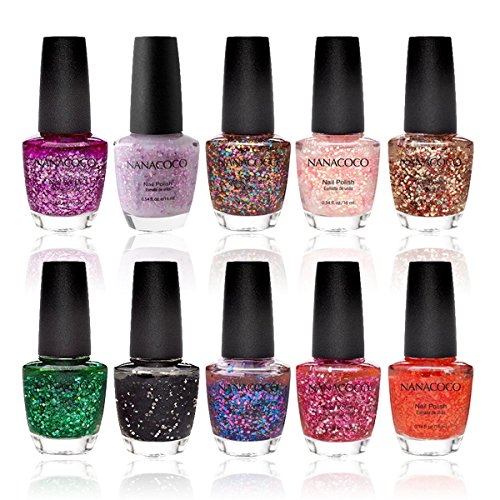 -. Title : Nanacoco Nail Polish Color Lacquer Set 10-Piece Collection #26 Partying With Glitter