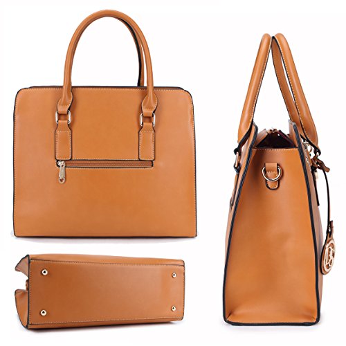 -. Feature : BUY IT FOR HER! Still bothering to choose a right birthday gift for your girl friend or your mum? This beautiful bag will definitely delight her with the designer and elegant design. We believe she will love it all. / 100% ECO-FRIENDLY VEGAN MATERIAL: high quality and smooth vegan leather. Feel safe to carry this chemical free bag. / COMFORTABLE&COMPACT TO CARRY: This bag is just of the perfect medium size to carry. The lightweight and smooth leather make this bag feel very compact to carry either by the top handles or the shoulder strap. / A TIMELESS DESIGN: Get carried away with this signature saffiano leather satchel, now comes with a matching wallet, is a forever favorite inspired by a vintage silhouette. It features sophisticated accents like a leather belting finish with a polished lock. Carry this roomy satchel by the handles to the office, or use the shoulder strap which is perfect for errand running and nights on the town! / VERSATILE TO CARRY ALL: This bag measures: 14"W x 13"H x 6"D, with 5.5" high handle drops and a 32" detachable shoulder strap. Plenty inside to keep your daily essentials like cellphone, wallet, perfume, keys, documents, books and so on. It can comfortably fit a 12" laptop. This bag would be your best choice to carry to your office as a office briefcase. You may also choose a right color for your school, shopping, gathering, travel etc.