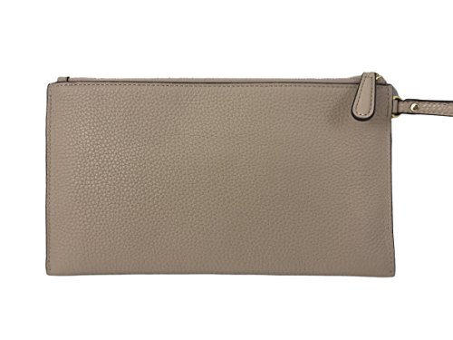 -. Feature : Leather with gold tone hardware. / Approximate measurement: 9.75"L x 5.75" H / Wristlet strap with 6" long / Interior: Lined interior with 6 credit card holders, 1 slip pocket. / Zip closure.